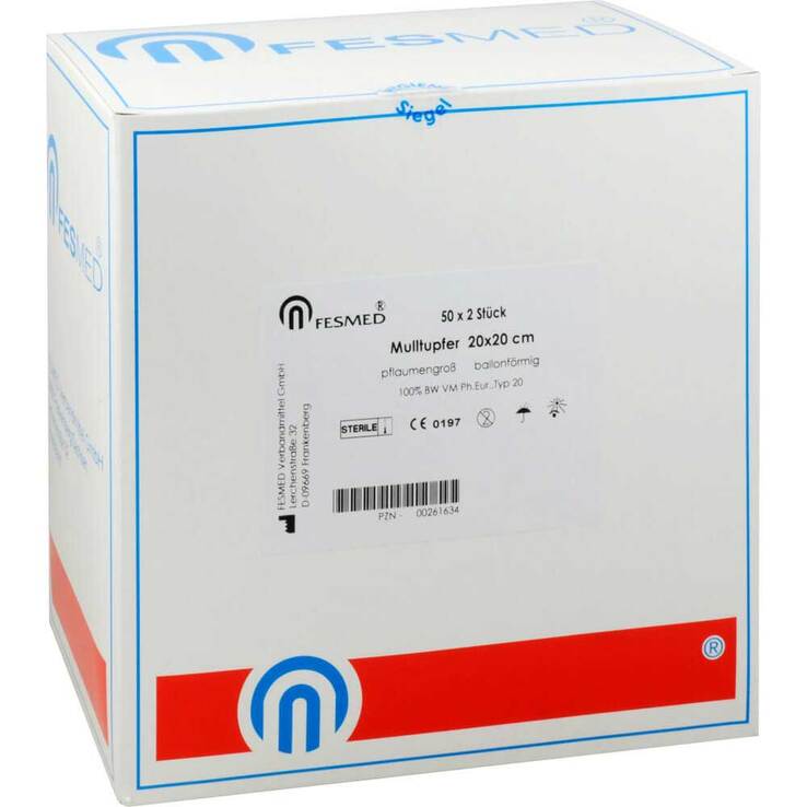 Mulltupfer 20x20cm pflaumengroß ballonf.steril, 50X2 St