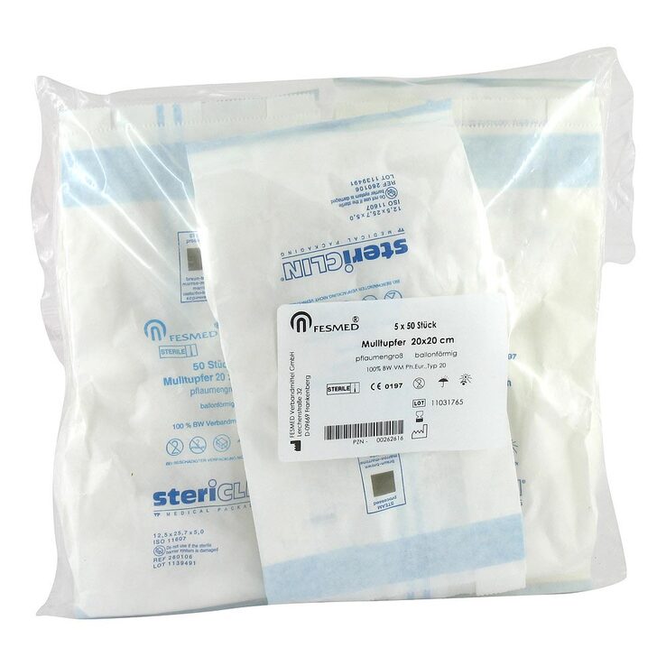 Mulltupfer 20x20cm pflaumengroß ballonf.steril, 5X50 St