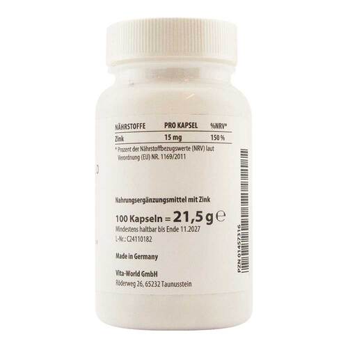 Zink 15 mg Zinkgluconat Kapseln, 100 St