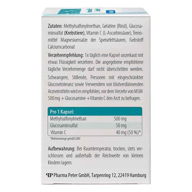 - Nahrungsergänzungsmittel mit Methylsulfonylmethan (MSM), Glucosaminsulfat und Vitamin C*