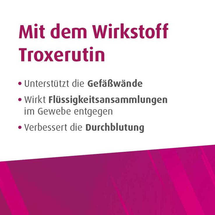 Die Arbeit der Muskulatur in den Waden ist für unseren Blutkreislauf von großer Wichtigkeit. Wie eine Pumpe fördert sie das sauerstoffarme Blut gegen die Schwerkraft zum Herzen zurück. Langes Stehen oder Sitzen behindert diese Aktivität der Wadenmuskeln, die Funktion der Pumpe gerät ins Stocken. Die Folge: Das Blut verbleibt länger in den Beinen, der Druck in den Venen steigt an. Unter der statischen Belastung dringt Flüssigkeit in das umliegende Gewebe ein. Das Resultat sind schwere, müde und gegebenenfalls schmerzende Beine. Zudem treten häufig auch kleine blaue Verästelungen unter der Hautoberfläche, die sogenannten Besenreiser, auf.Troxerutin – Die Formel für mehr Leichtigkeit