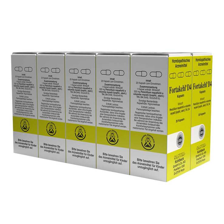 FORTAKEHL ® D4 - KapselnZusammensetzung: 1 Kapsel enthält: Wirkstoff: 330 mg Penicillium roquefortii e volumine mycelii (lyophil., steril.) Trit. D4 (HAB, Vorschrift 6). Sonstiger Bestandteil: Kapselhülle: Hypromellose. Registriertes homöopathisches Arzneimittel, daher ohne Angabe einer therapeutischen Indikation. Gegenanzeigen: Nicht anwenden bei: - bekannter Überempfindlichkeit gegenüber Schimmelpilzen (Penicillium roquefortii) - Autoimmunerkrankungen - Kindern unter 12 Jahren - Schwangeren und Stillenden Nebenwirkungen: Aufgrund des Gehaltes von FORTAKEHL® D6 an spezifischen organischen Bestandteilen können in seltenen Fällen Überempfindlichkeitsreaktionen, hauptsächlich in Form von Hautreaktionen, auftreten und eine Allergie gegen den Bestandteil Penicillium roquefortii ausgelöst werden. Das Arzneimittel ist dann sofort abzusetzen und ein Arzt aufzusuchen. Hersteller: SANUM-Kehlbeck GmbH & Co. KG, Postfach 1355, 27316 Hoya. Zu Risiken und Nebenwirkungen lesen Sie die Packungsbeilage und fragen Sie Ihre Ärztin, Ihren Arzt oder in Ihrer Apotheke.