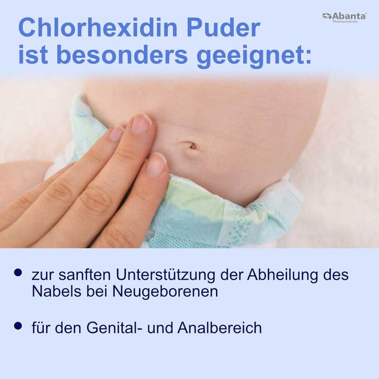 Als besonders wichtiges Pflegemittel hat sich Chlorhexidin Puder in der Säuglingspflege erwiesen. Hebammen schwören auf die Verwendung des Puders, um den Abheilungsprozess des Nabels sanft zu unterstützen. Aber auch in der Pflege kranker und älteren Menschen hat Chlorhexidin Puder seinen Platz gefunden.