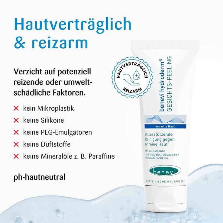 Ideal ergänzend: Verwenden Sie Benevi Hydroderm Gesichtsreinigung zur täglichen Reinigung und das Gesichtsfluid plus zur leichten, mitesserlösenden Feuchtigkeitspflege.