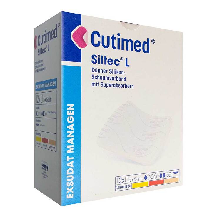 Cutimed Siltec L Schaumverband 5x6 cm dü.san.haf., 12 St