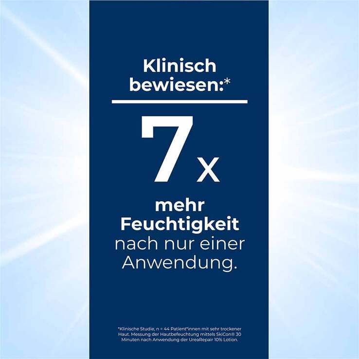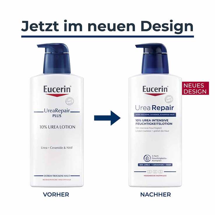 Die Eucerin UreaRepair Lotion 10% pflegt hochwirksam bei sehr trockener bis extrem trockener Haut. In ihrem Repair-PLUS-Komplex kombiniert die Bodylotion die Wirkstoffe Urea, Ceramide sowie die natürlichen Feuchthaltefaktoren. So wird die Feuchtigkeitsbindung der Haut verbessert und der Lipid-(Fett-) und Feuchtigkeitshaushalt wieder in ein natürliches Gleichgewicht gebracht.