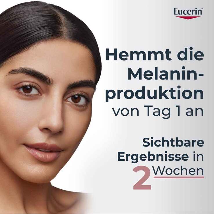 Das Eucerin Anti-Pigment Dual Serum mildert Pigmentflecken effektiv, schützt vor ihrer Neuentstehung und erneuert das Hautbild. Das Serum mit Einkammer-Spender wirkt mit pathentiertem Thiamidol, welches Pigmentflecken und sogenannte Altersflecken am Ursprung bekämpft und sie nach und nach mildert. Außerdem verhindert das Serum bei regelmäßiger Anwendung, dass neue Pigmentflecken entstehen. Erste Ergebnisse sind schon nach 2 Wochen sichtbar und Pigmentflecken verbessern sich bei kontinuierlicher Anwendung stetig weiter.