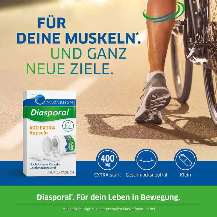 Magnesium Diasporal 400 Extra Kapseln vitalisieren Muskeln*. Die Kapseln sind praktisch für alle, die eine schnelle Magnesiumeinnahme ohne Geschmack bevorzugen. Das Produkt ist für den erhöhten Magnesiumbedarf geeignet.