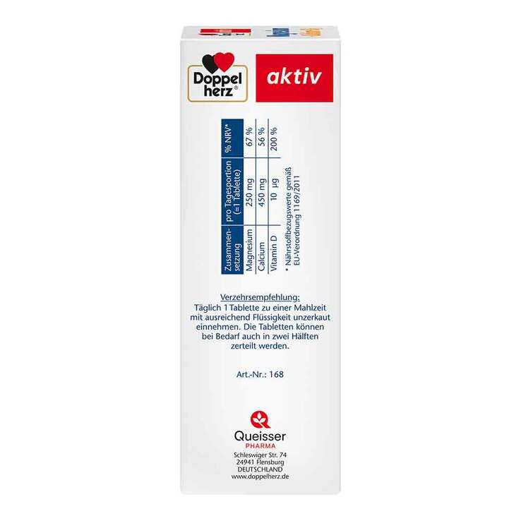 Bei unausgewogener Ernährung oder einem erhöhten Nährstoffbedarf durch körperliche Anstrengungen (z. B. Sport) empfiehlt sich eine Nahrungsergänzung mit Doppelherz Magnesium+Calcium+D3 Tabletten.