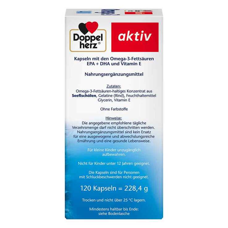 Die Kapseln von Doppelherz enthalten in 1400 mg Seefischöl 35 % Omega-3-Fettsäuren und unterstützen so mit bereits 1 Kapsel täglich die Versorgung mit diesen wertvollen Fettsäuren.
