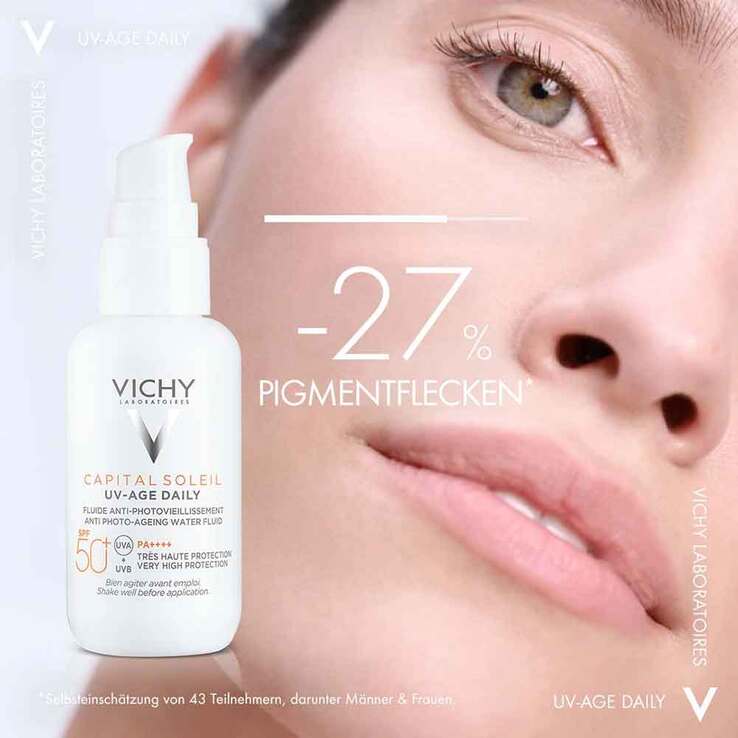 Das Vichy Capital Soleil UV-AGE getönte Sonnenfluid bietet einen innovativen UVA & UVB Schutz, um das Auftreten von Falten und Pigmentflecken vorzubeugen.