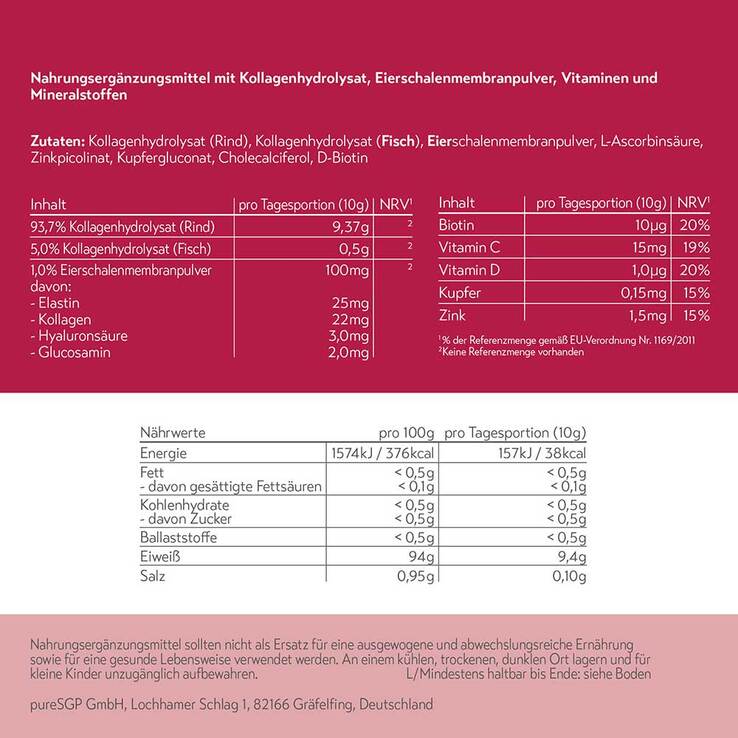 | 93,7 % Kollagenhydrolysat (Rind) | 9,37 g | *** |