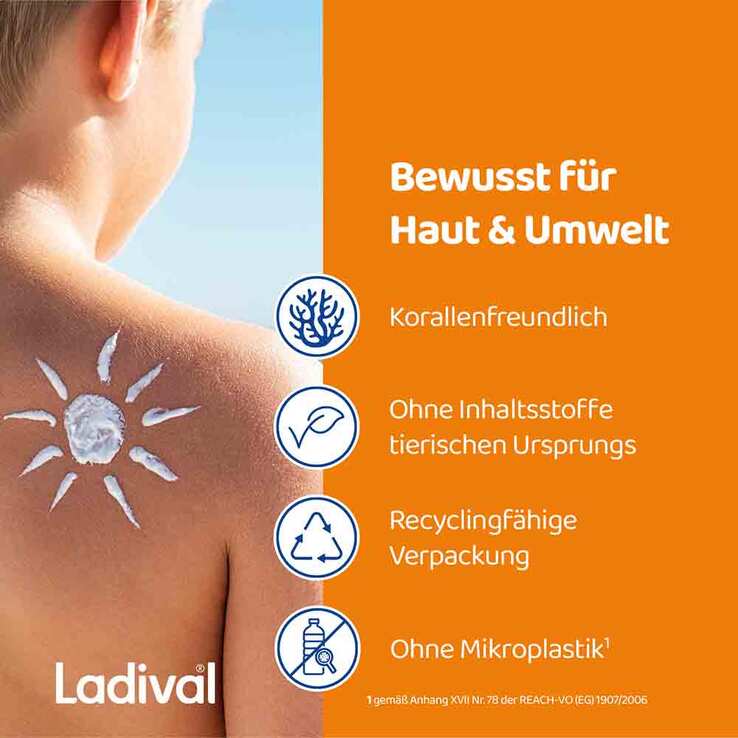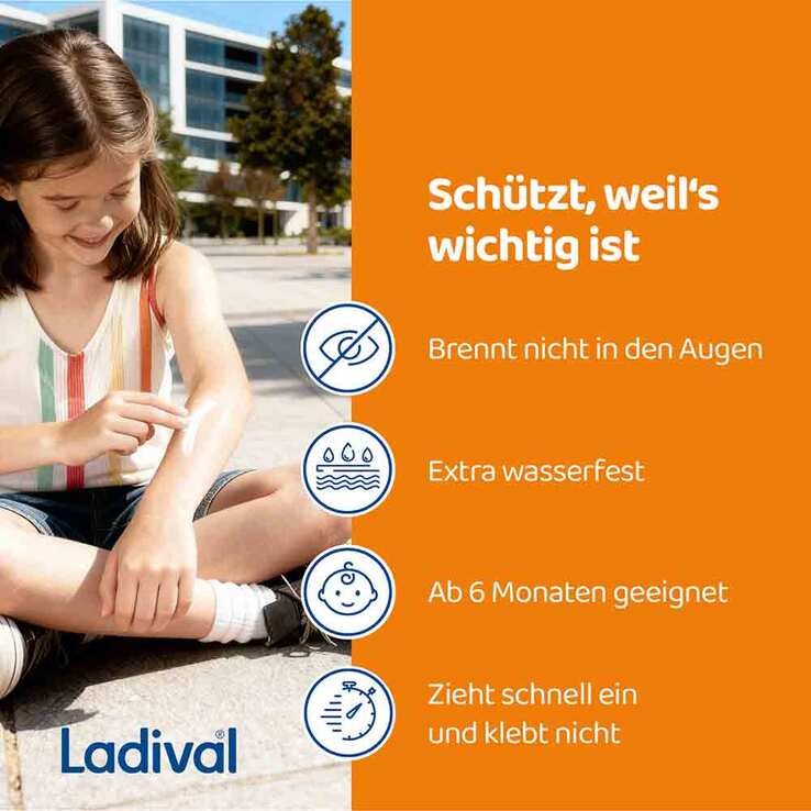 Kinderhaut ist besonders empfindlich gegenüber schädlichen UV-Strahlen und benötigt daher besonderen Schutz – vor allem, da Kinder viel Zeit im Freien verbringen. Ladival bietet hierfür die empfindliche Kinderhaut Sonnenschutz-Spray mit einem sehr hohen Lichtschutzfaktor von 50+. speziell formuliert für die empfindliche Haut von Kindern und Babys ab 6 Monaten.