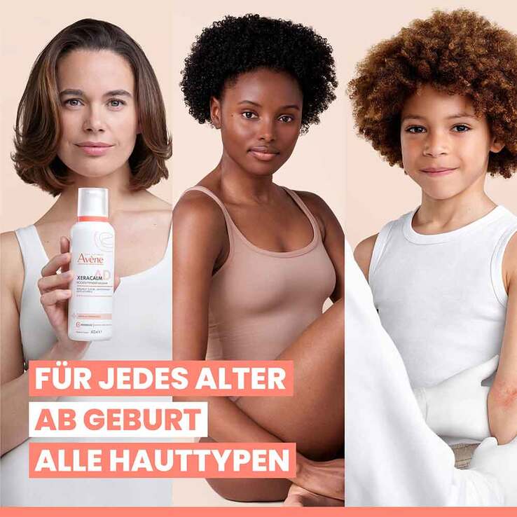Die Avene XeraCalm A.D Pflegeserie ist speziell für die extrem trockene und zu Neurodermitis neigende Haut konzipiert worden. Sie beruhigt die Haut, wirkt stark rückfettend und lindert den quälenden Juckreiz, unter dem vor allem Neurodermitis-Patienten sehr leiden. Von der Reinigung bis zur Pflege und Intensivpflege bietet Avene XeraCalm A.D genau die richtigen Formulierungen für die angegriffene und strapazierte, trockene Haut.