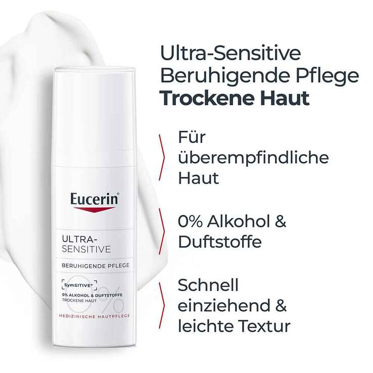 Eucerin Ultra Sensitive Beruhigende Pflege für Trockene Haut ist einfach fantastisch. Schon nach der ersten Anwendung fühlt sich die Haut viel besser sn. Trockene Stellen gehören von nun an zur Vergangenheit. Kein brennen kein jucken, einfach fantastisch.