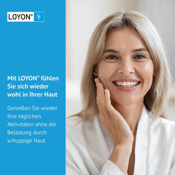 Schuppen und Krusten auf der Haut beeinträchtigen nicht nur das äußere Erscheinungsbild, sondern erzeugen auch oft Spannungsgefühl und Juckreiz – für Menschen mit schuppigen Hauterkrankungen wie Schuppenflechte oder seborrhoischem Ekzem bedeutet das häufig eine enorme Belastung. LOYON® sorgt für eine sanfte Schuppenlösung. Es wirkt rein physikalisch und ist auch für empfindliche Haut geeignet. Durch die Entfernung der lästigen Schuppen normalisiert sich das Hautbild, Beschwerden wie Juckreiz werden gelindert und die Folgebehandlung kann ihre Wirkung besser entfalten.