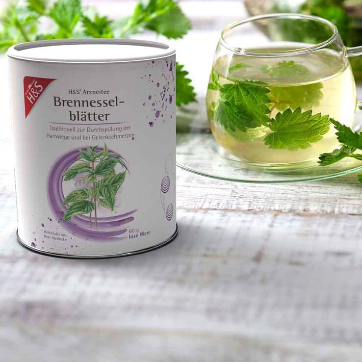 4 Teelöffel voll (ca. 2,8 g) H&S® Brennnesselblätter mit siedendem Wasser (ca. 150 ml) übergießen und nach etwa 10-15 Minuten gegebenenfalls durch ein Teesieb geben.