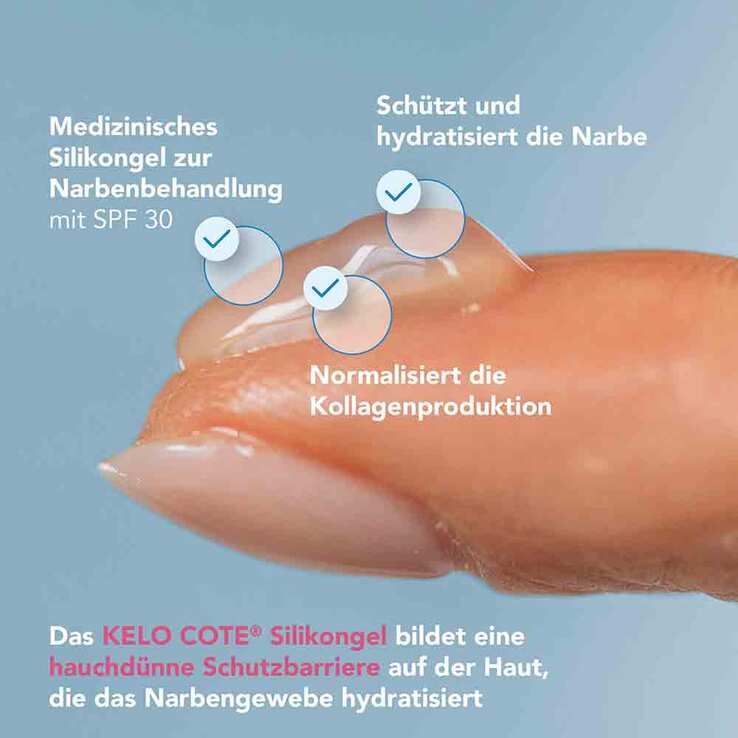 Durch KELO-COTE® Narbengel UV werden Narben flacher, weicher und glatter. Mit Narben verbundene Beschwerden und der Juckreiz werden gelindert und die Hautverfärbung wird reduziert.
