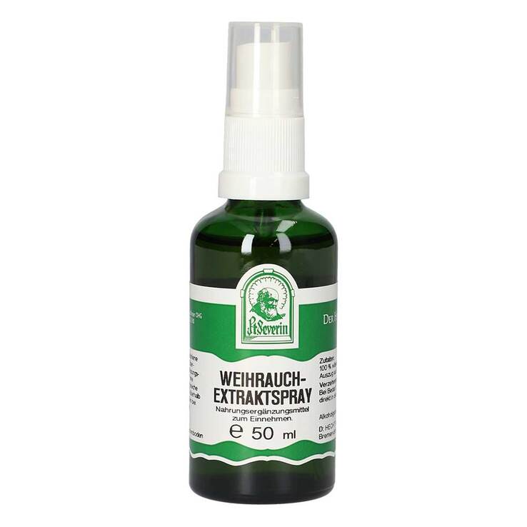 Weihrauchextraktspray enthält einen hochwertigen wässrig/alkoholischen Auszug aus Weihrauchextrakt im Verhältnis 1:5, hergestellt laut Arzneibuch.