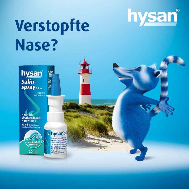 Bei einer verstopften Nase infolge einer Erkältung oder Entzündung der Nasennebenhöhlen ist schnelle Hilfe erwünscht, um wieder befreit durchatmen zu können. Zum Einsatz kommen deshalb vornehmlich abschwellende Schnupfensprays, so genannte Vasokonstriktoren, die rasch und zuverlässig wirken. Länger als 7 Tage dürfen diese jedoch nicht angewendet werden, um eine Schädigung der empfindlichen Nasenschleimhaut zu vermeiden. Eine gut verträgliche Alternative stellen Präparate auf Meersalz-Basis, wie z. B. hysan® Salinspray, dar. hysan® Salinspray nutzt die heilende Wirkung von natürlichem Meersalz auf die Atemwege. Die saline Lösung entzieht der Schleimhaut übermäßiges Wasser und bringt sie zum Abschwellen. Der zähe Schleim wird verflüssigt und kann wieder abfließen. Unterstützt wird die hervorragende Verträglichkeit von hysan® Salinspray durch den Verzicht auf Konservierungsmittel. Das hypertone Meersalzspray ist auch zur Langzeitanwendung geeignet.