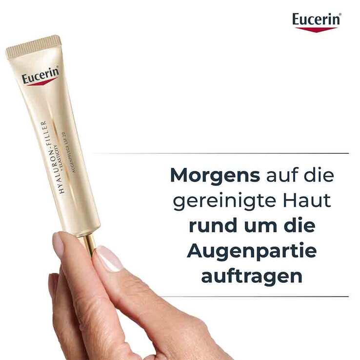 Durch den natürlichen Hautalterungsprozess verliert die Gesichtshaut über die Jahre ihre Straffheit, Widerstandskraft und Elastizität. Besonders davon betroffen ist die sensible Haut direkt unter den Augen. Dank Eucerin HYALURON-FILLER + ELASTICITY Anti Aging Hautpflege wird die Hautstruktur der empfindlichen Augenpartie nachhaltig gestärkt und der Faltenbildung entgegengewirkt.
