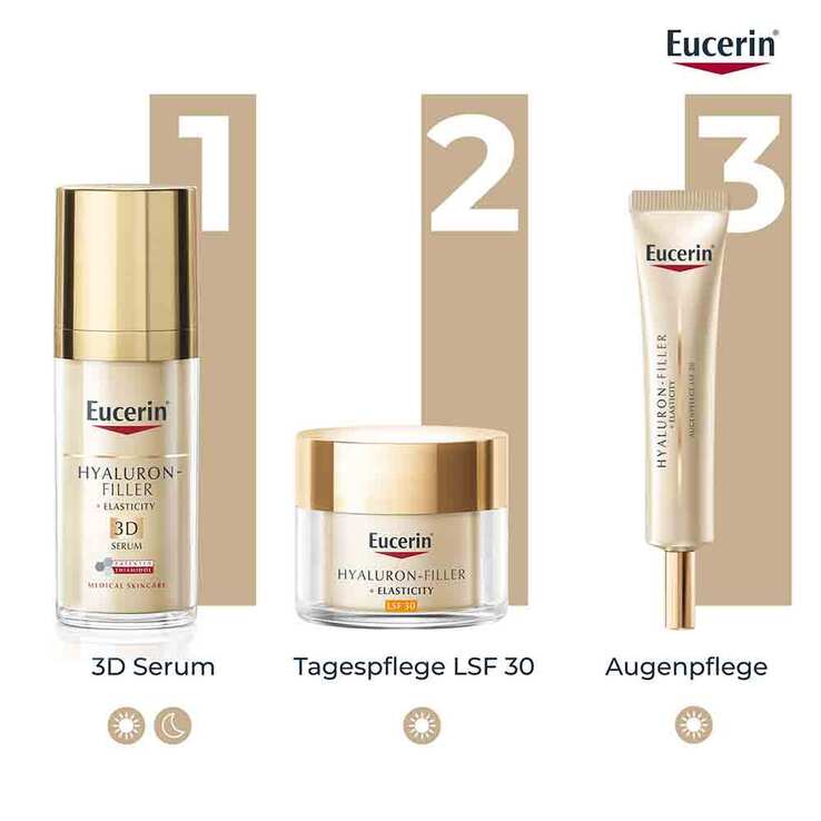 Die ganze Eucerin Serie ist einfach toll. Ich habe auch die HYALURON-FILLER + ELASTICITY 3D Serum, HYALURON-FILLER + ELASTICITY Rose Tag mit Spf 30 und jezt die HYALURON-FILLER + ELASTICITY Augenpflege LSF20.