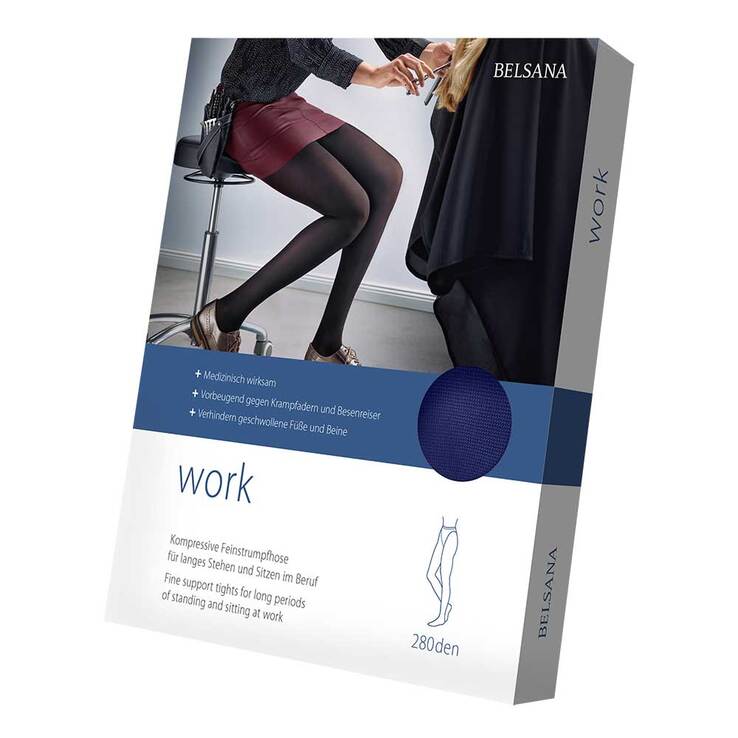 Die kompressiven Strümpfe BELSANA work gibt es in zahlreichen aktuellen Modefarben. Sie bieten ein angenehmes Tragegefühl und zusätzlich einen Shaping-Effekt für eine optisch schlankere Silhouette.