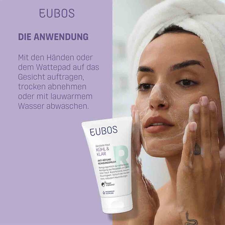 Die Eubos Kühl und Klar Anti-Rötung Reinigungsmilch ist Therapie begleitend bei Couperose und Rosacea einsetzbar und dermatologisch getestet.