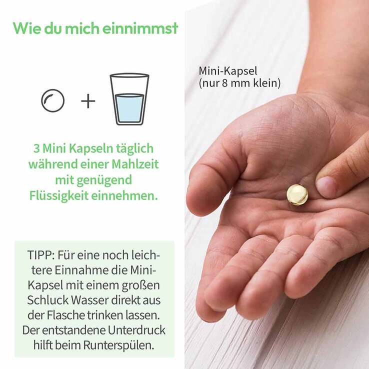 Nahrungsergänzungsmittel sind kein Ersatz für eine ausgewogene und abwechslungsreiche Ernährung und eine gesunde Lebensweise. Die angegebene empfohlene tägliche Verzehrmenge darf nicht überschritten werden. Das Produkt außerhalb der Reichweite von kleinen Kindern lagern.
