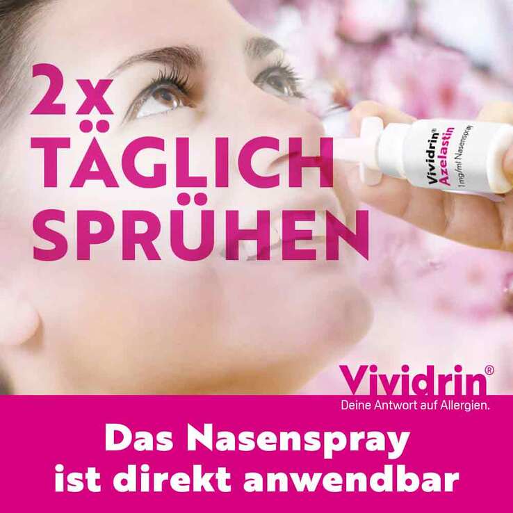 Unzählige Auslöser machen der empfindlichen Nasenschleimhaut und Bindehaut zu schaffen: Allergien gegen Pollen, Tierhaare, Hausstaubmilben oder Schimmelpilzsporen verursachen unangenehme Beschwerden. Ein Antiallergikum wie Vividrin® Azelastin Kombipackung wirkt zuverlässig gegen die Symptome der Allergie bei gleichzeitig guter Verträglichkeit.