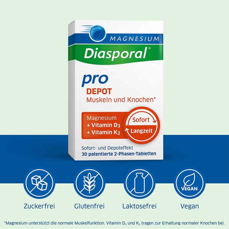 Magnesium Diasporal pro D3 + K2 Depot Muskel + Knochen Tabletten, 30 St