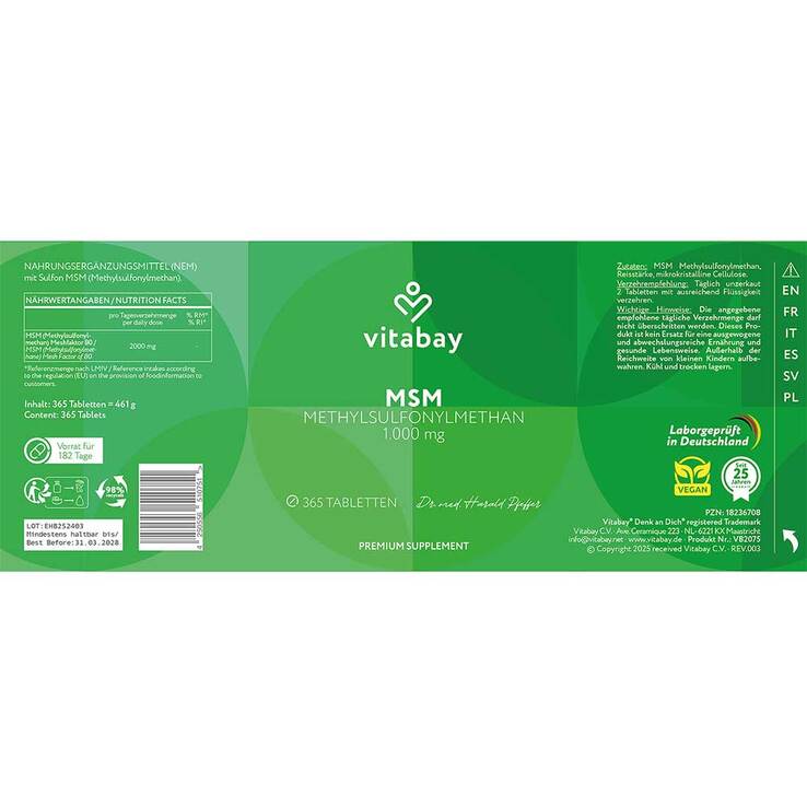 MSM 1000 mg Methylsulfonylmethan vegan Tabletten, 365 St