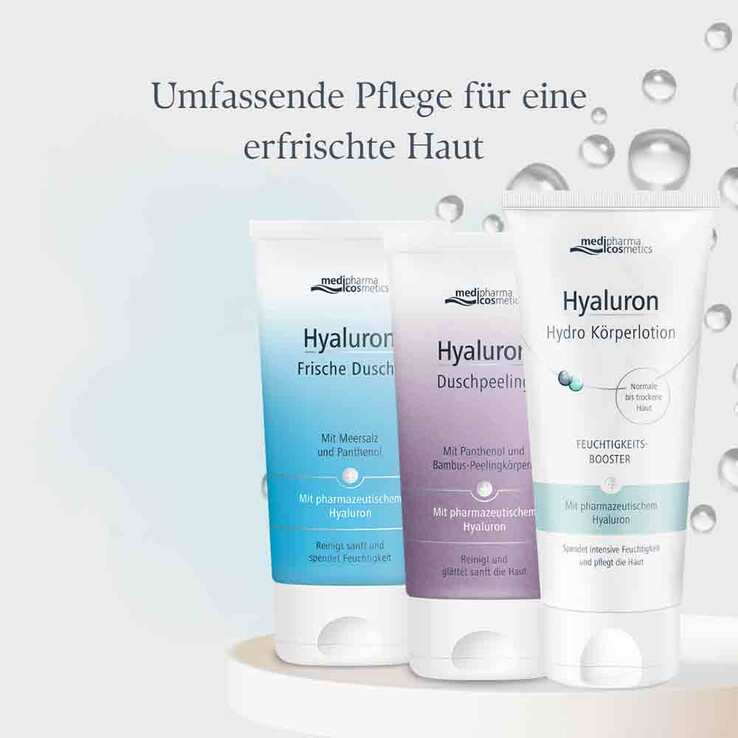 Die Hyaluron Frische Dusche bereitet die Haut optimal auf die anschließende Pflege vor. In Kombination mit der Hyaluron Hydro Körperlotion entsteht eine harmonische Pflegeroutine, die die Haut nach dem Duschen intensiv mit Feuchtigkeit versorgt und für ein langanhaltend geschmeidiges Hautgefühl sorgt.