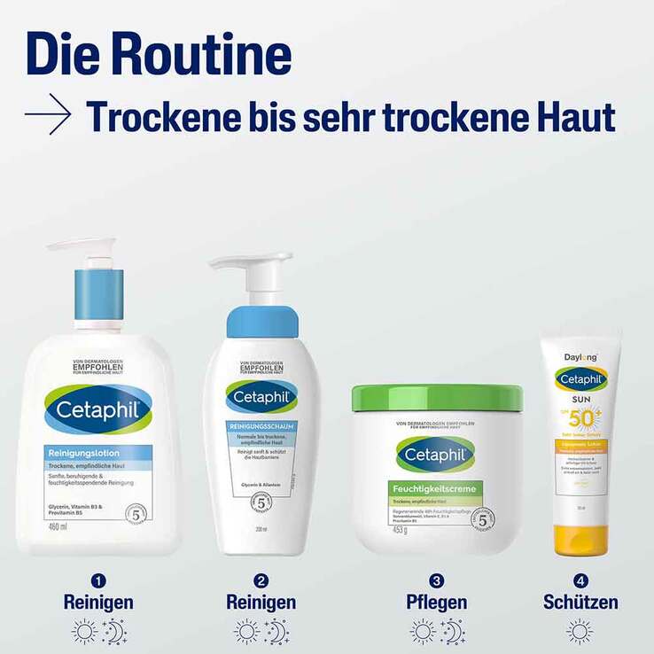 Cetaphil Basispflege: Reinigungs- und Pflegeprodukte für empfindliche und trockene Haut.