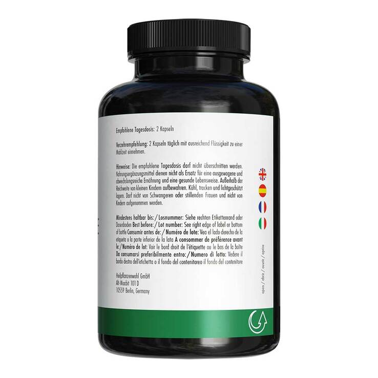 Die empfohlene Tagesdosis darf nicht überschritten werden. Nahrungsergänzungsmittel dienen nicht als Ersatz für eine ausgewogene und abwechslungsreiche Ernährung und eine gesunde Lebensweise.