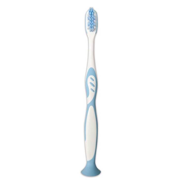 Die Borsten der miradent Carebrush® Junior sind besonders weich und auf das Gebiss und die Zähne von Schulkinder Kindern abgestimmt. Der rutschfeste Griff liegt sicher in kleinen Händen und erleichtert das eigenständige Zähneputzen. Der integrierte Daumenstopp sorgt zusätzlich für Orientierung und Kontrolle.