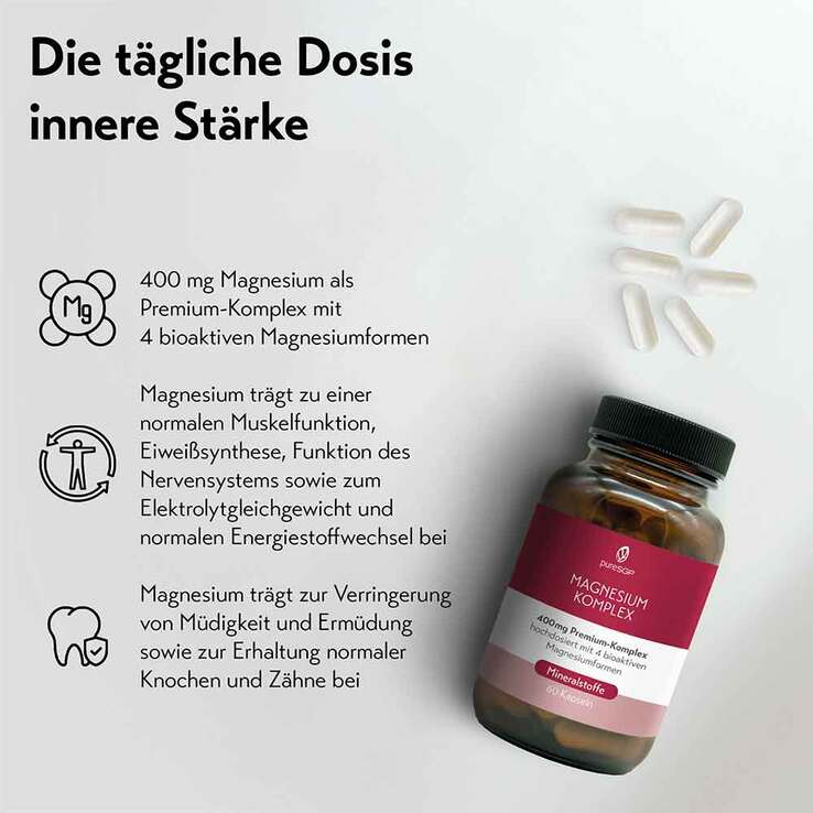 - Hochdosiert mit 400 mg Magnesium pro Tagesdosis