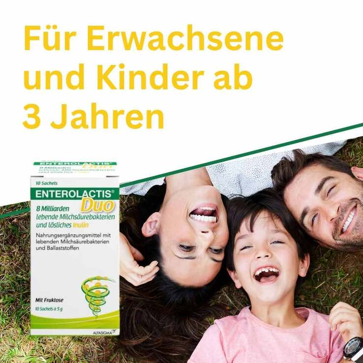 Ich bin über Enterolactis duo positiv überrascht. ...Man kann die Sachets einfach in ein Glas Wasser oder Saft geben und trinken.