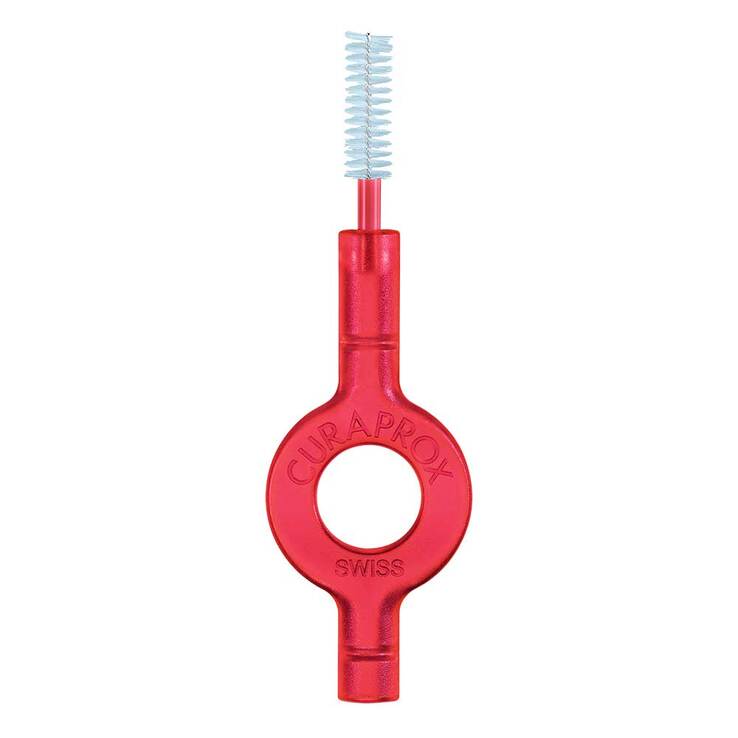 Dank des Klicksystems passt jede Curaprox-Interdentalbürste auf jeden Halter. Einfach die alte, abgenutzte Bürste herausdrücken, die neue einklicken und mit der Reinigung der Zahnzwischenräume fortfahren.