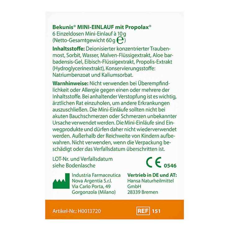 Bekunis® Mini-Einlauf mit Propolax® Klistiere