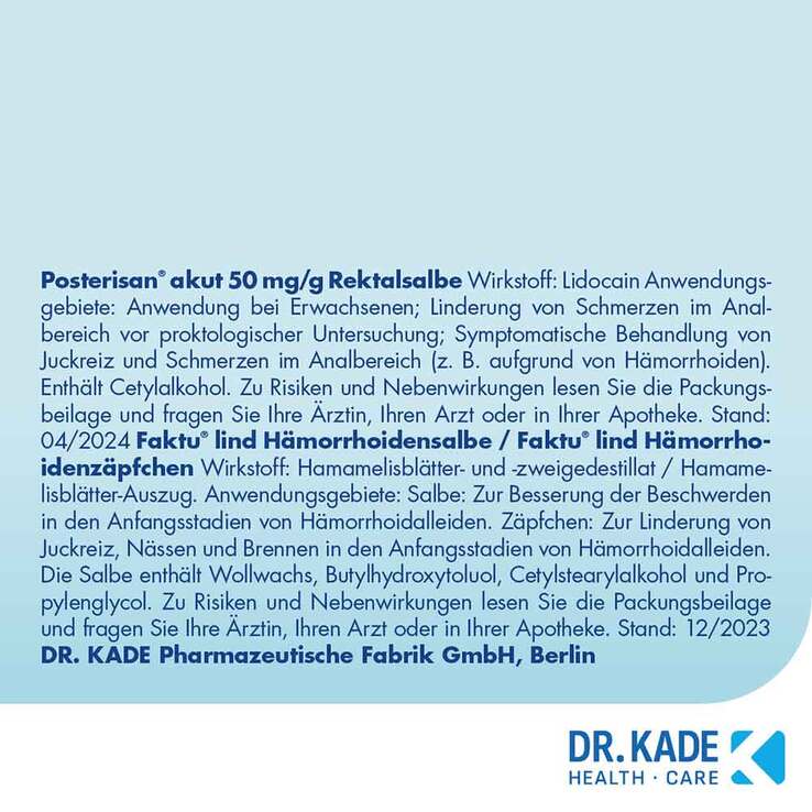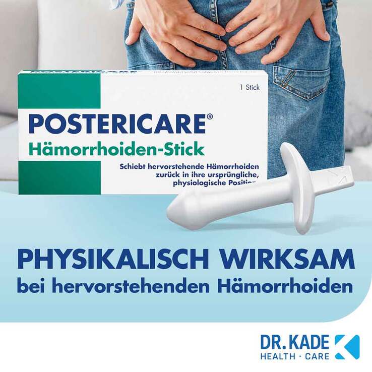 POSTERICARE® Hämorrhoiden-Stick: Hilft direkt da, wo die Beschwerden sitzen.Der POSTERICARE Hämorrhoiden-Stick dient der Rückverlagerung (Reposition) der aus dem Analkanal vorstehenden (auch: prolabierten, herausfallenden) Hämorrhoidalpolster in ihre ursprüngliche physiologische Position im Analkanal.