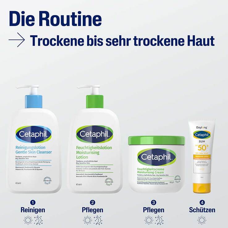 - Cetaphil Basispflege: Reinigungs- und Pflegeprodukte für empfindliche und trockene Haut.