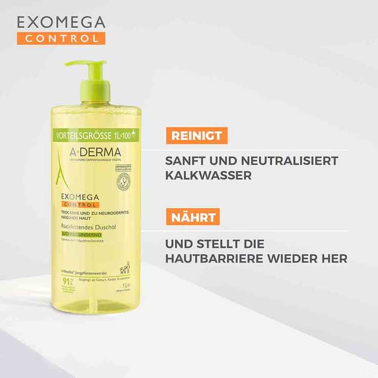 Das EXOMEGA Control Duschöl ist ein rutschfestes Reinigungsöl, welches sanft schäumt und sich leicht abspülen lässt. Es ist seifenfrei, brennt nicht in den Augen und ist daher sehr gut für Kinder geeignet.