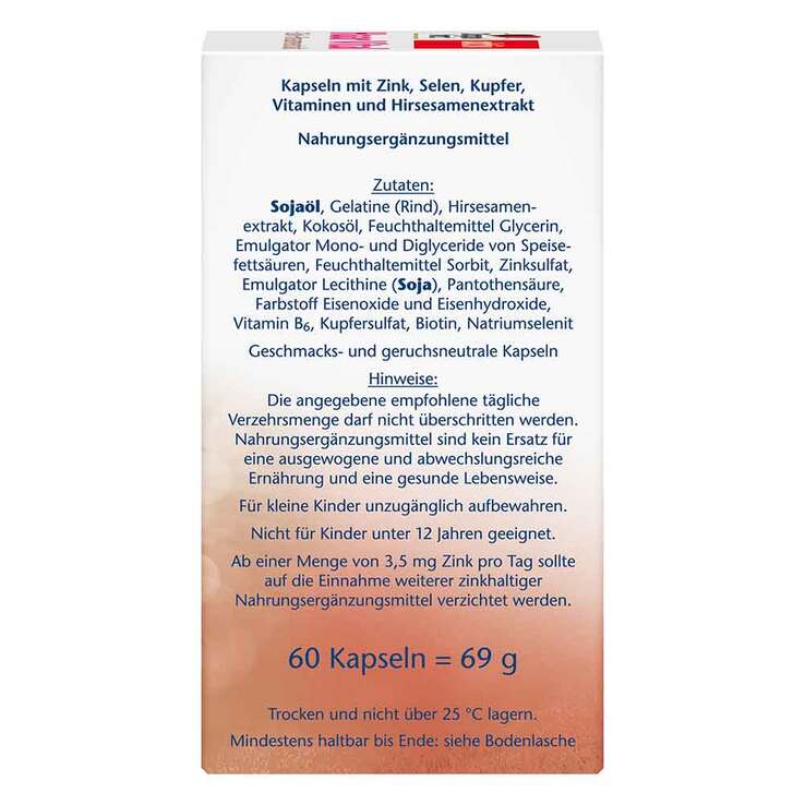 - Enthält zudem Zink*, Selen*, Biotin*, Pantothensäure*, Kupfer* und Vitamin B6*