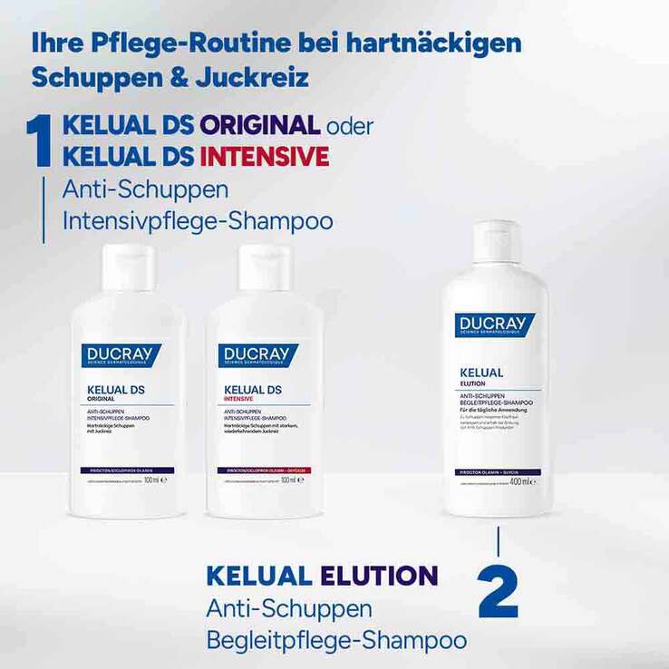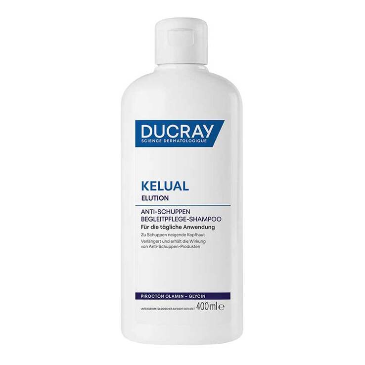 Elution Anti-Schuppen Begleitpflege-Shampoo von Ducray ist eine effektive Begleitpflege zur täglichen Anwendung nach oder im Wechsel mit Anti-Schuppen-Behandlungen wie Kelual DS (bei seborrhoischem Ekzem oder Kleienpilzflechte) oder Kertyol P.S.O. (bei Psoriasis).