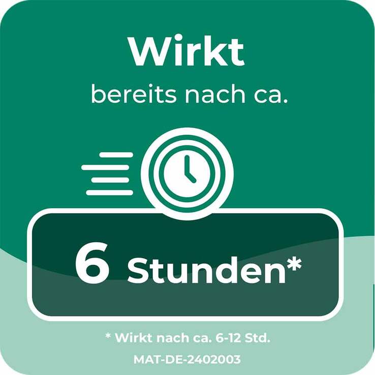 - einmal täglich am Abend oder Morgen, der Wirkungseintritt erfolgt nach 6 bis 12 Stunden