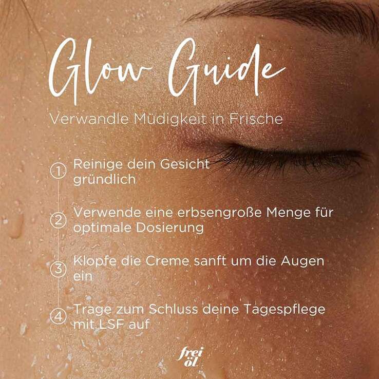 Morgens und abends auf die Haut um das Auge auftupfen und sanft einklopfen.