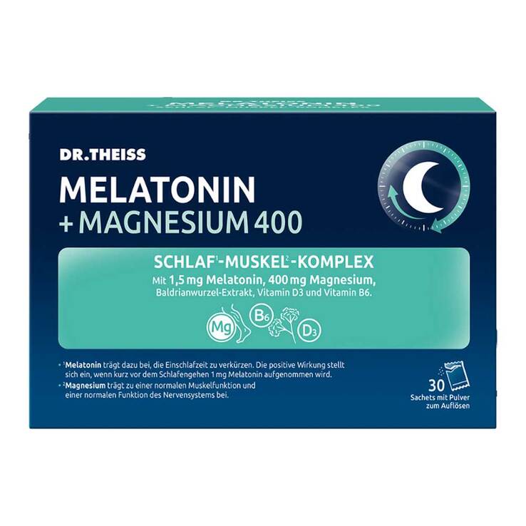 Dr. Theiss Melatonin + Magnesium - die Kombination aus Magnesiumcitrat, 1,5 mg Melatonin, Baldrianwurzel-Extrakt, Vitamin D3 und Vitamin B6