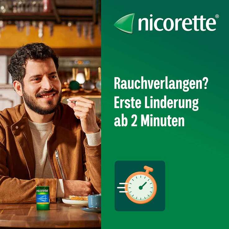 nicorette® freshmint 2 mg / 4 mg Lutschtabletten, gepresst; nicorette® fruit 2 mg Lutschtabletten, gepresst Wirkstoff: Nicotin (als Nicotinresinat). Anwendungsgebiete: Behandlung der Tabakabhängigkeit durch Linderung der Nicotinentzugserscheinungen und Verringerung des Nicotinverlangens für Raucher mit geringer Tabakabhängigkeit (2 mg Lutschtablette freshmint / fruit) bzw. mit starker Tabakabhängigkeit (4 mg Lutschtablette freshmint) ab 18 Jahren. Zum sofortigen Rauchstopp sowie zur Verringerung des Zigarettenkonsums (Rauchreduktion), um auf diesem Wege schrittweise den Rauchausstieg zu erreichen. Zu Risiken und Nebenwirkungen lesen Sie die Packungsbeilage und fragen Sie Ihre Ärztin, Ihren Arzt oder in Ihrer Apotheke. Kenvue Germany GmbH, 41470 Neuss. Stand: 05/2025