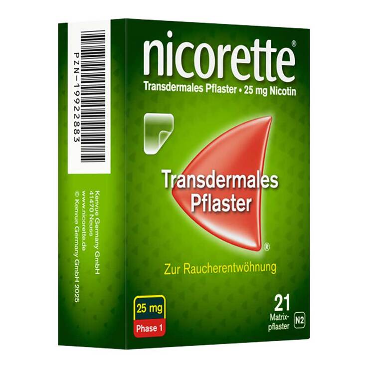 nicorette® TX Pflaster 10 mg, 15 mg, 25 mg Wirkstoff: Nicotin. Anwendungsgebiete: Behandlung der Tabakabhängigkeit durch Linderung der Entzugserscheinungen. Unterstützung der Raucherentwöhnung. Zu Risiken und Nebenwirkungen lesen Sie die Packungsbeilage und fragen Sie Ihre Ärztin, Ihren Arzt oder in Ihrer Apotheke. Kenvue Germany GmbH, 41470 Neuss. Stand: 05/2025